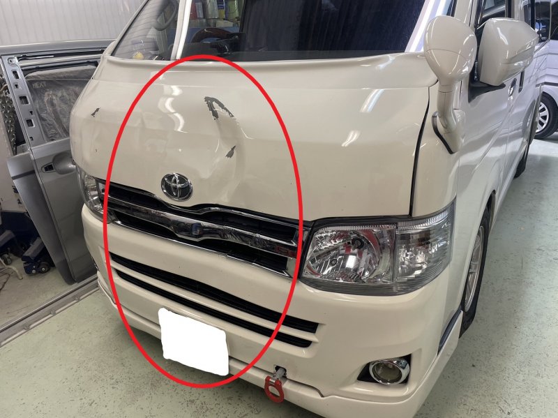 トヨタ ハイエース ボンネット バンパー グリル 交換 骨格修理 保険修理 京都 山科
