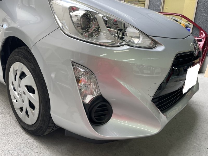 トヨタ アクア フロントバンパー 傷 へこみ 修理 塗装 滋賀県 草津市