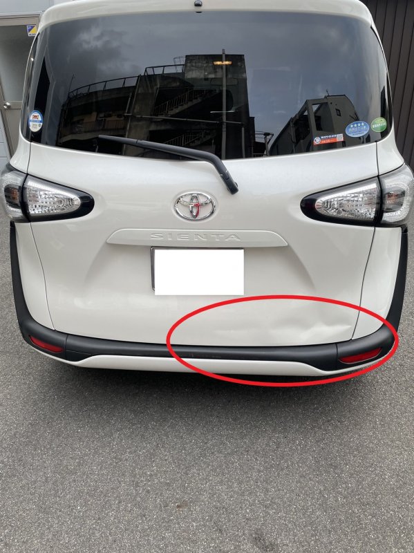 トヨタ シエンタ バックドア 傷 へこみ 修理 板金 塗装 京都 山科