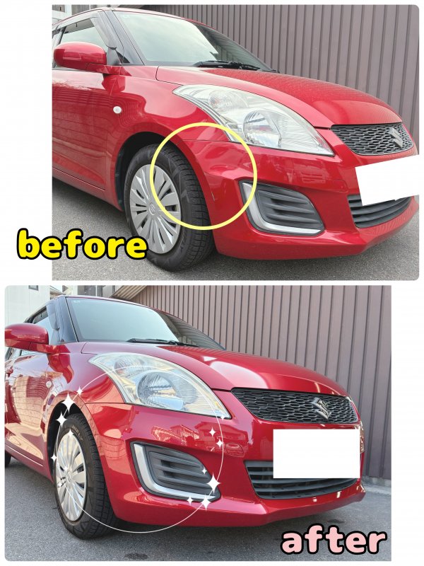 スズキ スイフト フロントバンパー 傷 修理 塗装 京都市 山科区