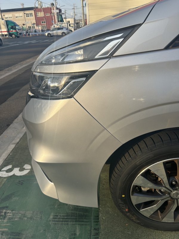 | 修理の箇所・サービス内容 | フロントバンパー交換 下まわりと左フロントフェンダー修理 左フロントタイヤ交換 |