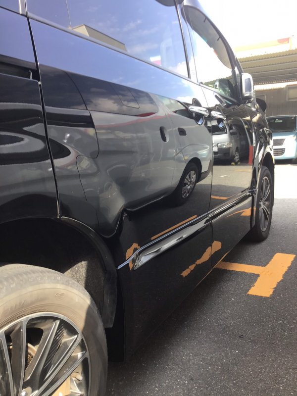 修理の箇所・ | サービス内容左右フロントドア磨き・左右フロントドアガーニッシュ修理・左右リヤドア鈑金・右リヤドアガーニッシュ修理・左リヤドアガーニッシュ交換・左リヤフェンダー上部鈑金 |
