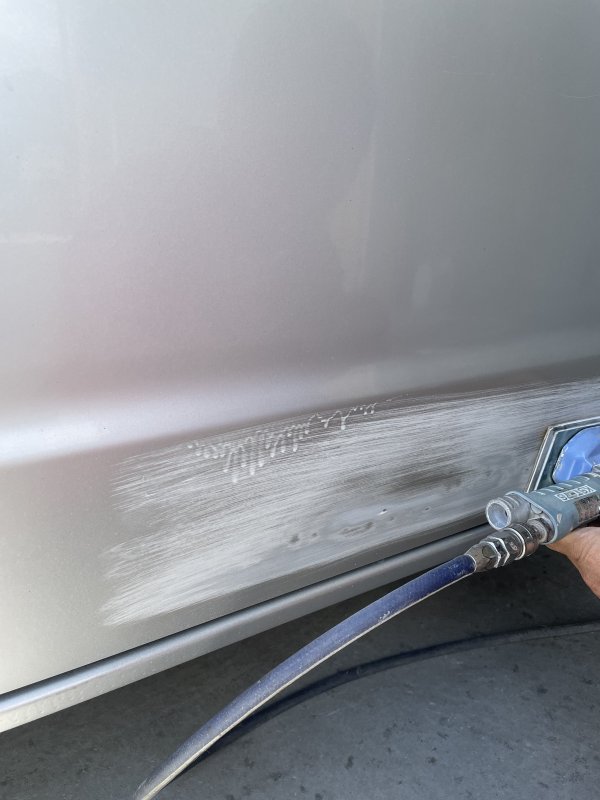 左のRドアの再鈑金、塗装の下地処理から再塗装。