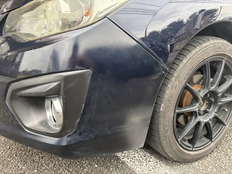 八千代町 インプレッサ フロントバンパー ワレ・キズ 交換 左フロントフェンダー キズ 鈑金・塗装 古河・野木・小山・下妻・坂東・結城・境・筑西 ヘコミ キズ