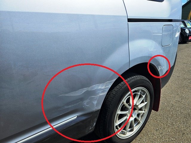 本日の車輛は、以前当店をご利用いただきましたお客様より保険修理依頼で入庫しました三菱デリカD5になります。この度も当店のご利用誠にありがとう御座います。自宅駐車場より出庫の再に、お隣の車輛に引っ掛けてしまったとのお話でした。(内輪差でうっかり引っ掛けてしまう事もあります!ご愛車は綺麗に直りますのでご安心下さい!)お客様の要望で、左側の保険修理と同時に右側のキズも自己修理にてご注文いただきました。保険修理側はリヤスライドドアの交換・クォーターパネル修理・ホイール交換となり、右側はリヤスライドドア修理。クォーターパネル修理となります。両側面での修理でしたので、少しお日にちをいただきましたが綺麗に直りました。ご愛車のキズ等お気軽に当店までご相談下さい!
