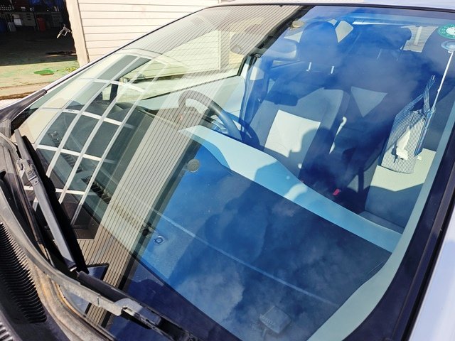 本日の車輛は、昨年当店より車輛購入いただきましたお客様よりフロントガラスひび割れのご相談及び入庫になりましたトヨタのアクアになります。先日フロントガラス根本に溜まった氷を叩いて割った後で、ガラスにヒビが入っている事に気が付いたとのお話でした。今回交換に当って、車輛のガラスに熱線が入っているタイプでしたので、交換ガラスの種類や問題点等お伝えして安い熱線無しの輸入ガラスでは無く程度の良い純正中古ガラスにて交換致しました。ワイパー周辺は氷付きやすい場所ですので、つい叩いて氷取りをしてしまいがちですが、エンジン始動時にはデフロスターのスイッチを入れて暖気中にガラスを温めるのが一番良いと思います。(フロントガラスの熱線が付いていればデアイサーもオンにすると早いです)ガラスは割れやすいので、氷を叩いている衝撃がガラスに響いてしまいます。あとお湯をかけるのは絶対NGですので止めましょう!熱膨張に非常に弱いのであっという間に割れてしまいます。ご愛車のトラブル等お気軽にご相談下さい!