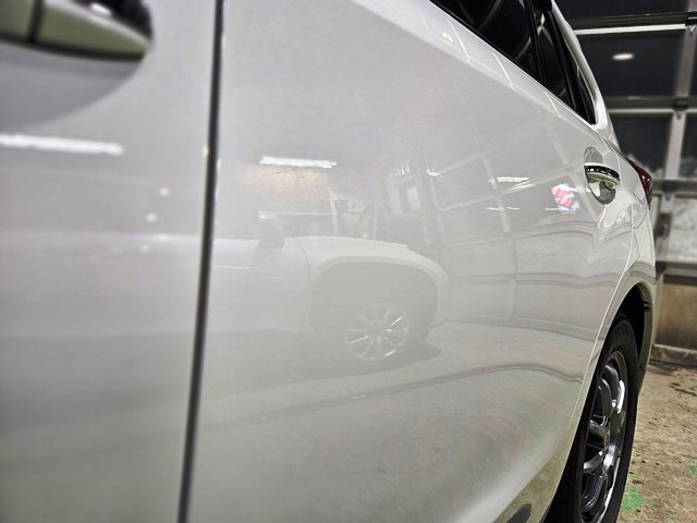 本日の車輛は、左側側面を雪山(氷)に擦ってしまったとのお話で入庫しましたスバルのインプレッサスポーツになります。当店のご来店及びご利用誠にありがとう御座います。お客様のご要望により今回は板金塗装では無く、キズ落としの磨き作業となります。左フロントドア中央部とリヤドア中央部にクォーターアーチ部の3パネルにキズがある状態でした。各パネル共にキズ落としの磨き作業を行い当初よりは綺麗になりましたが、パット見には判りずらいのですが一部かなり深いキズがありました。