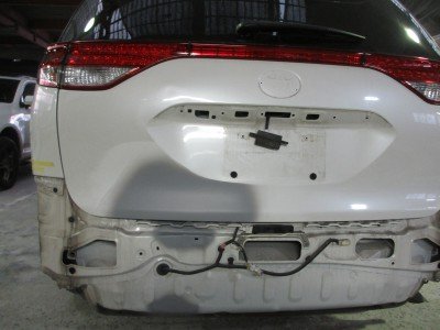 熊本市からお越しのお客様。エスティマのハッチバックの凹みでご来店です。バックの時、突起物に気付かすぶつけてしまったそうです。