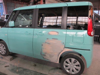 福岡市南区 スズキ スペーシア ドア 左側面 キズへこみ 板金塗装修理