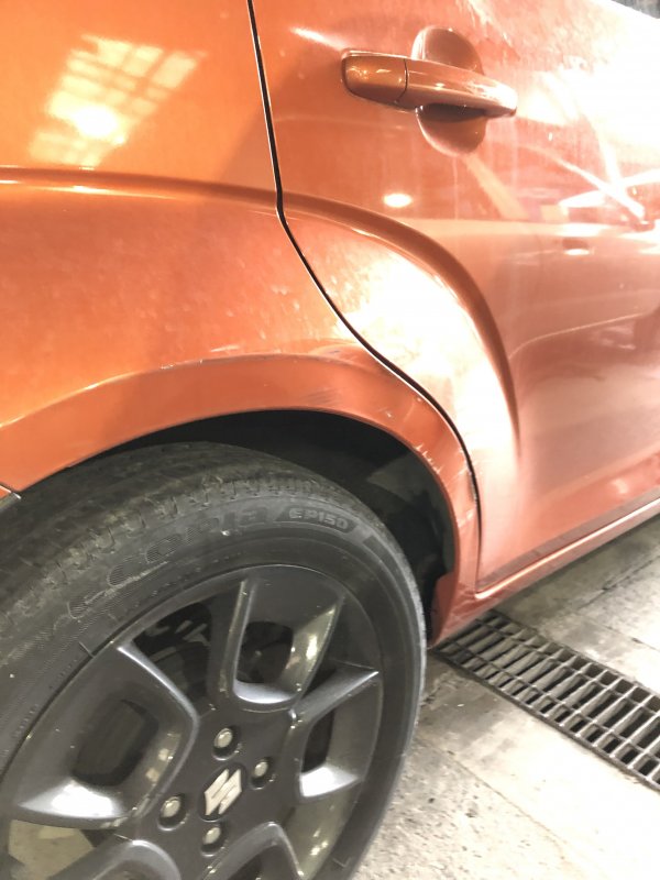 福岡県福岡市城南区|イグニス(スズキ)のキズ・へこみ直し事例(右リアドア リアフェンダー)