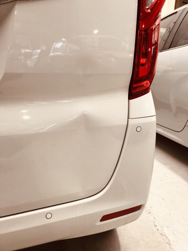 バックドアを後退時にブロック塀等に当てて破損してしまい修理のご相談でご来店頂きました。