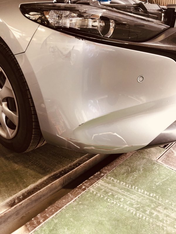 福岡県福岡市城南区|マツダ3(マツダ)のキズ・へこみ直し事例(フロントバンパー)