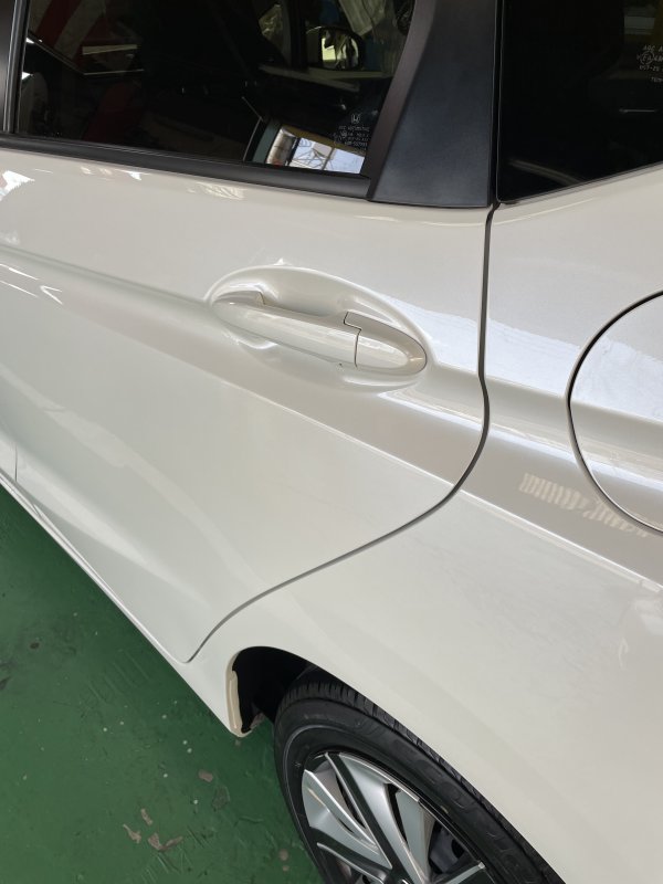 堺市 北区 ホンダ フィットHV 左クォーターパネル リヤドア 損傷 板金 塗装 車の修理