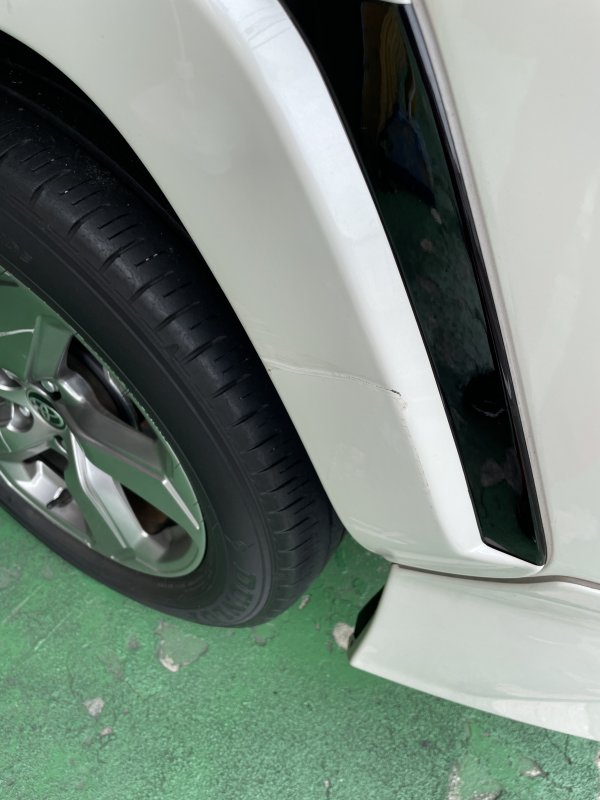 堺市 北区 トヨタ アルファード フロントバンパー クォーターパネル ガリ傷 ヘコミ 損傷 板金 塗装 車の修理 ワンボックス 自動車 事故 保険