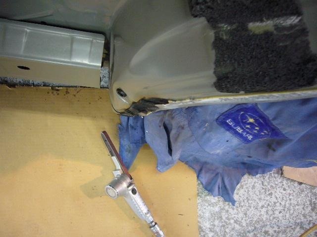ドア、クォーターパネルは交換となります。クォーターパネル、切開して取り外した状態です。