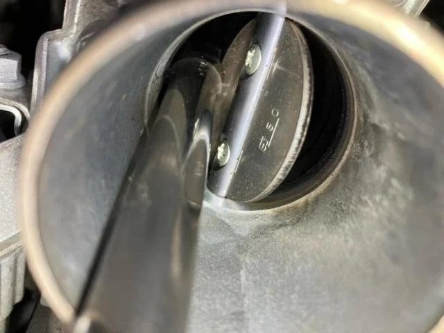 作業前のスロットルボディの状態。黒いカーボンが溜まっています。