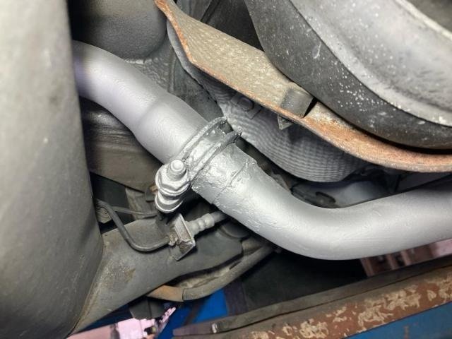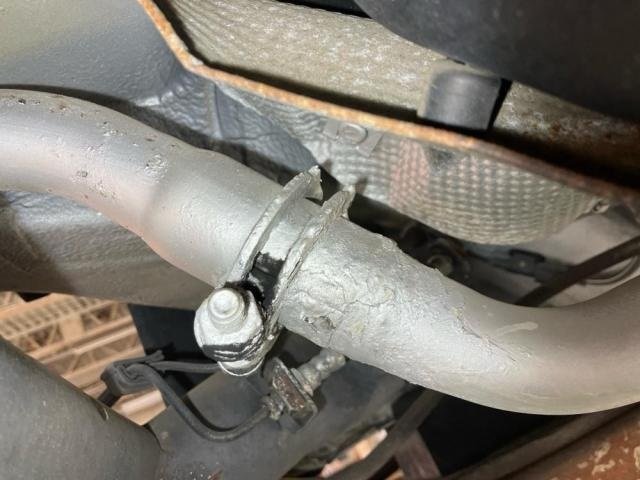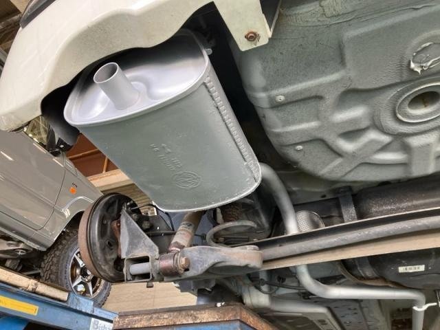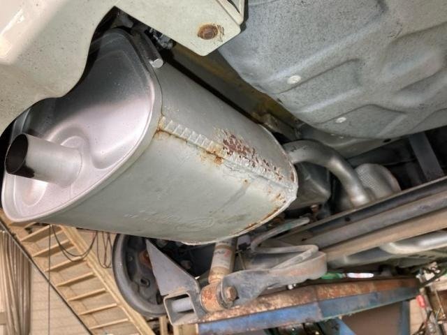 メーンマフラーは錆びが進行しており、前方パイプとの継ぎ目から排気漏れ跡が確認されました。