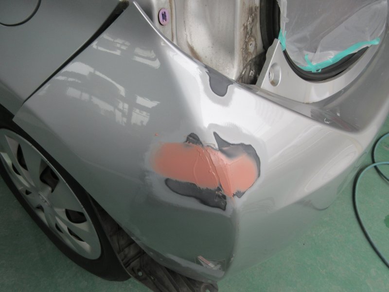 リアバンパ-をぶつけてしまい、キズと変形ができてしまいました。