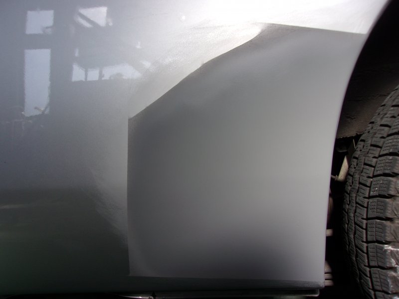 左のクォータ-をぶつけてしまい鈑金作業でお預かりしました。