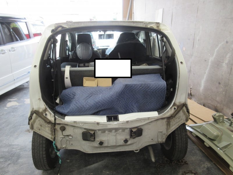 リアガラスとエンブレム、新品のリアバンパ-を取り付けて