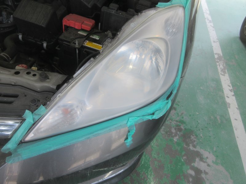 【ヘッドライトの黄ばみ取り】埼玉県朝霞市 日産ティ-ダ ライトスチ-マ-処理