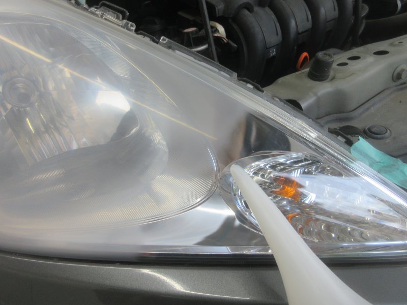 溶剤を加熱して蒸気になった所でライトの表面にあてていくと