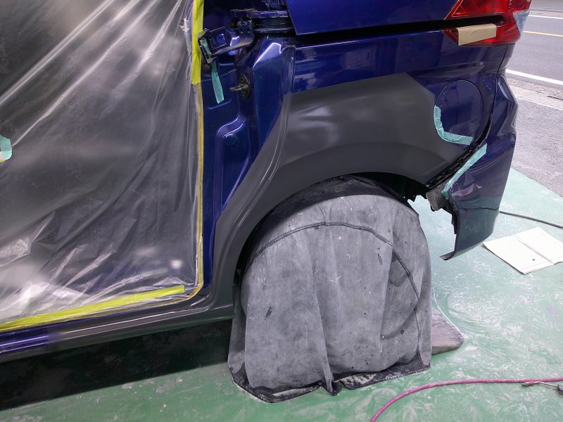 リアドアは交換して、後ろのクォーターパネルは鈑金していきます。