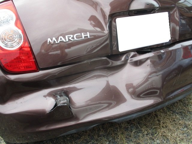 【長野県 上田市 塩田町 中野 東御市 上田菅平】ニッサン・マーチ、リヤゲート交換、リヤバンパー交換、バックパネルキズ・ヘコミ修理作業事例、最安値、最短修理日数、安心安全