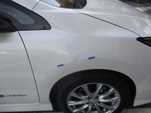 フロントフェンダーは、曲がり角や狭い駐車場での切り返しなど、うっかり擦ってしまいやすい場所の一つですよね。毎日使うお車だからこそ、こういったキズやヘコミは早くキレイに直したい!と思われるお気持ち、痛いほどよく分かります。電気自動車であるリーフも、もちろん当店でしっかり修理させていただきますのでご安心くださいね。