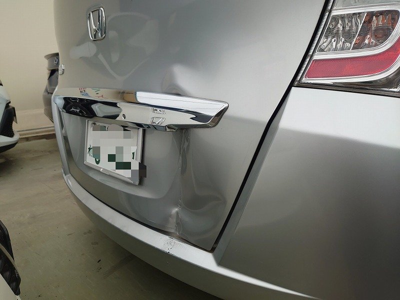 バックドアは交換レベルの損傷でしたが、自費修理とのことで鈑金修理での希望があり、バンパーと併せて修理にて対応させて頂きました。