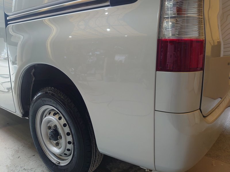 クォーターパネルのスライドレール後方下部からパネル下部まで大きく損傷していました。