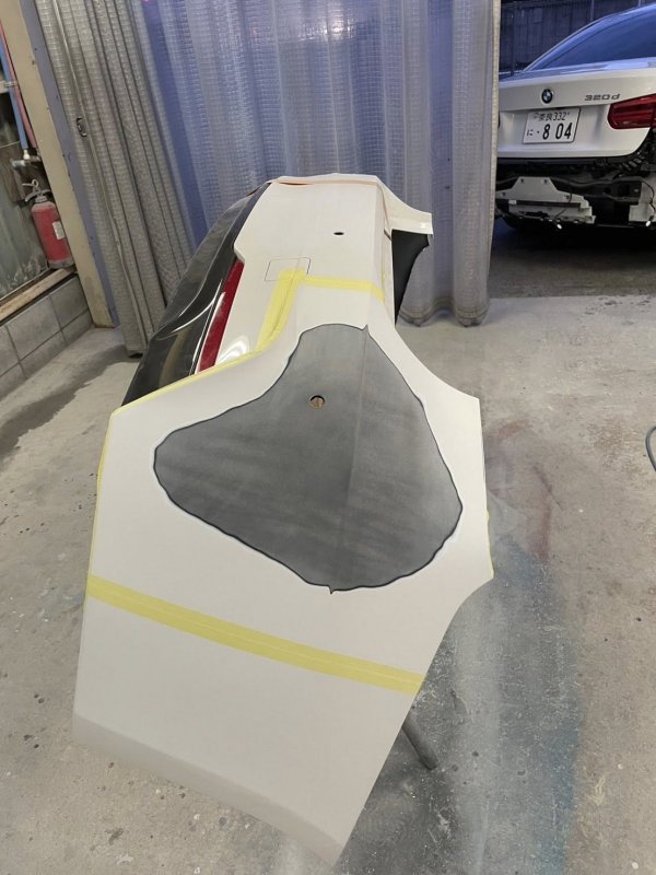 下地処理後、リアバンパー塗装