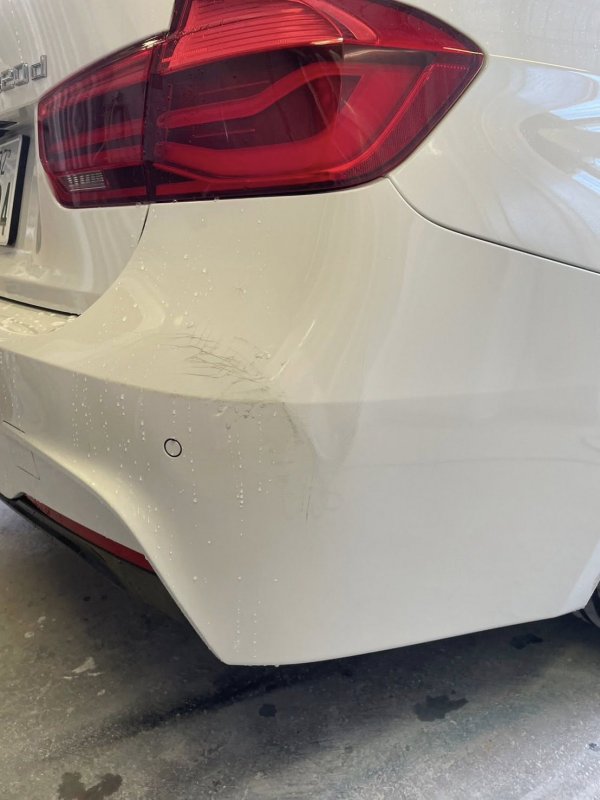 奈良県奈良市 BMW3シリーズ リアバンパ 擦り傷 へこみ 鈑金 塗装 修理保証 安い 価格