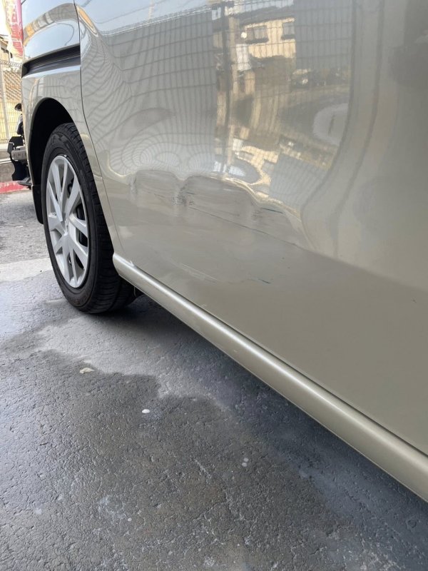 狭い駐車場や壁・ポールなどに接触してしまい、リアドア後方を中心に大きく擦り傷とへこみが発生していました。