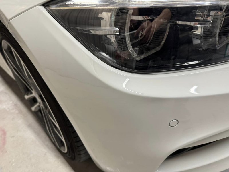 今回ご紹介させて頂くのはBMW3シリーズに付いてしまったキズ・ヘコミ修理作業のご紹介になります。フロントバンパー全体に擦り傷があります ディーラでフロントバンパー交換の見積が出たので鈑金で直して欲しいとのご相談