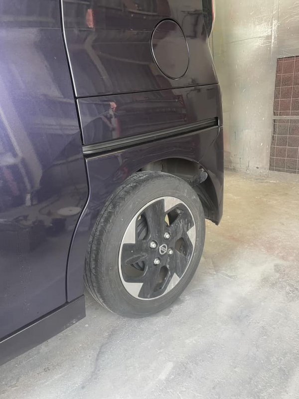 奈良県奈良市 日産ルークス リアフェンダ リアバンパ 擦り傷 へこみ 鈑金 塗装 修理保証 安い 価格