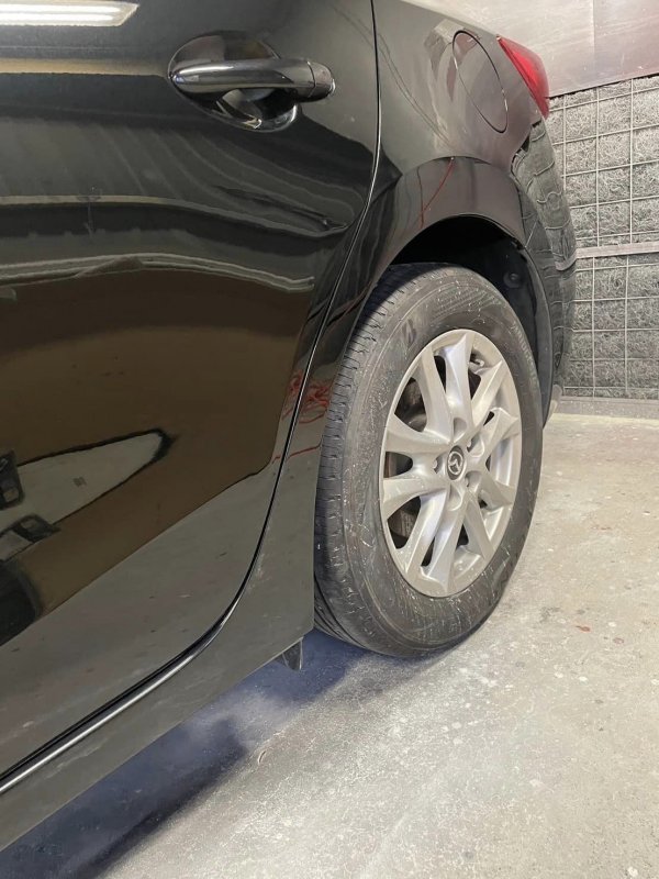 今回ご紹介させて頂くののは マツダアクセラ リアドア リアフェンダに付いてしまったキズ・ヘコミ修理作業のご紹介になります。