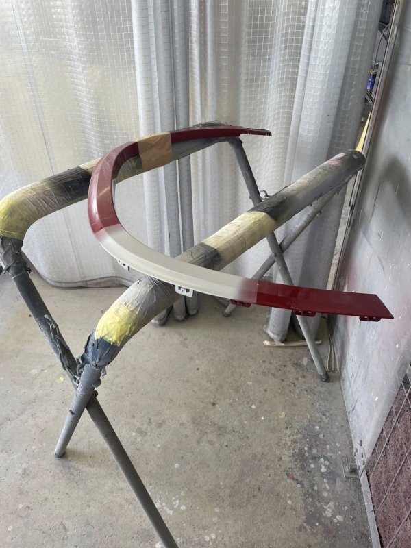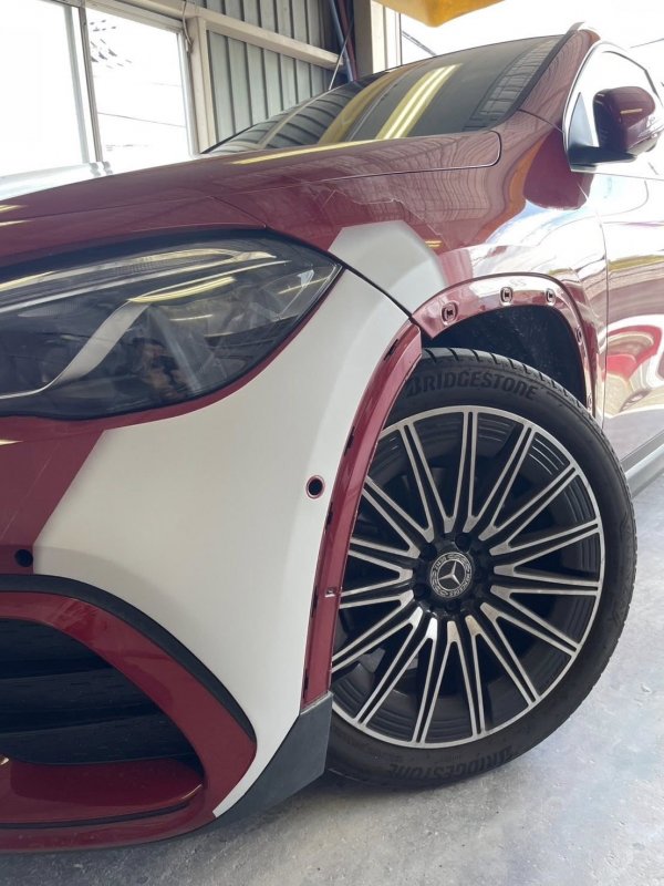 下地サフェーサー塗布後、ボディカラー(メルセデス純正メタリック塗装)で塗装。