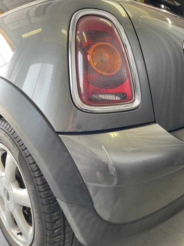 奈良県奈良市 BMWミニ リアフェンダ リアバンパ 擦り傷 へこみ 鈑金 塗装 修理保証 安い 価格