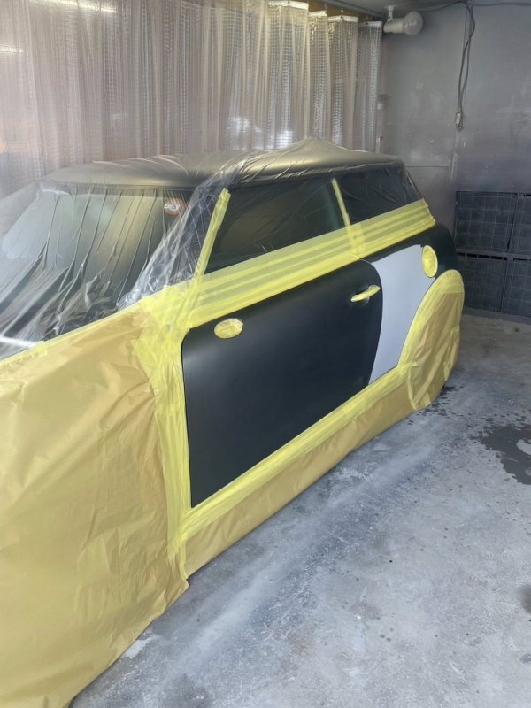 フロントドアへクリアを広めに吹き付け、自然な仕上がりへ