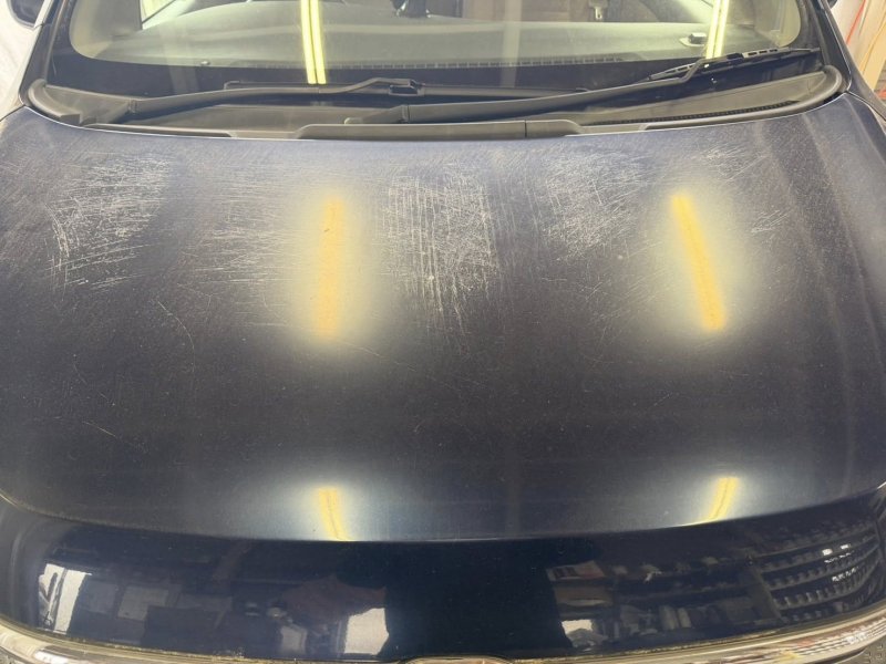 ボンネット全体にクリア剝がれが広がり、部分的にまだら模様のような状態になっていました。洗車をしてもツヤは戻らず、再塗装が必要な状態です。