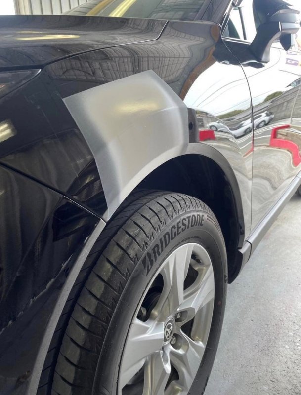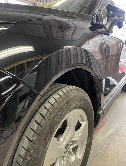京都府 木津川市 トヨタ ハリアー フロントフェンダー 傷 へこみ 鈑金 塗装 修理保証 安い 値段
