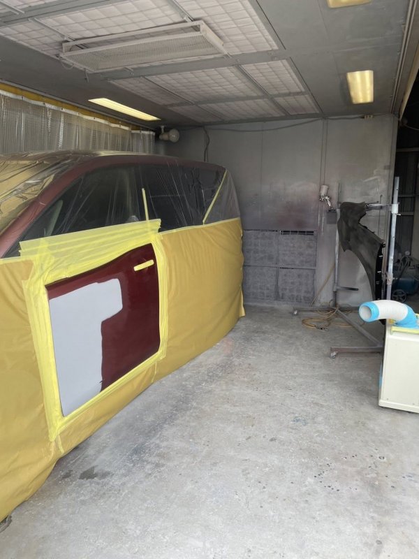 フェンダーだけを塗装すると色の違いが目立つ可能性があるため、ドアまで塗装を延長。