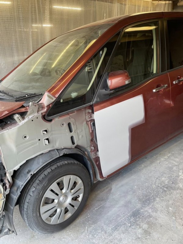 フロントドア:フェンダーとのつながり部分に軽度のキズあり。交換パネルとの色差を防ぐため、塗装を「ぼかし」で処理する必要あり。