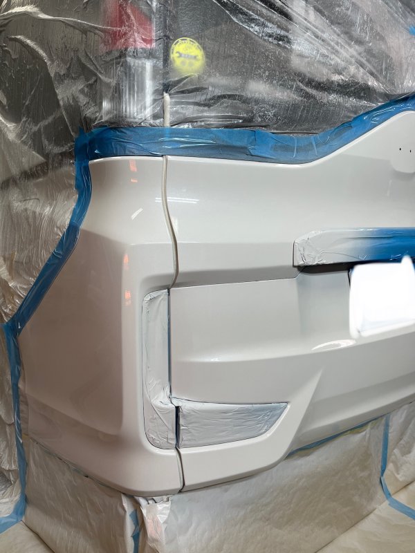 塗装が終了。全て修理で対応しました。交換する部品はエンブレムだけなのでパネル交換、修理と比べると費用をいくらか安く抑えれる事が出来ます。