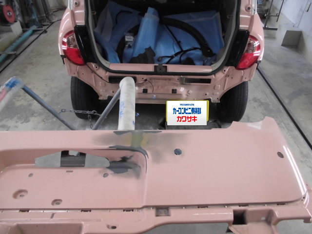 静岡県富士宮市|スペーシア(スズキ)のキズ・へこみ直し事例(スライドドアとサイドシルパネルのヘコミ修理)