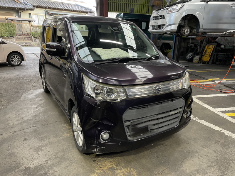 静岡県富士宮市|ワゴンR(スズキ)のキズ・へこみ直し事例(フロントバンパーとフェンダーとヘッドライト) 2025/10/29 - キズ・へこみ直し