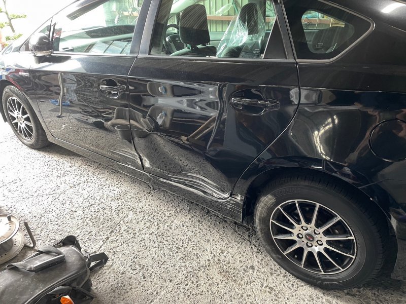 静岡県富士宮市|プリウス(トヨタ)のキズ・へこみ直し事例(左側面の大きなヘコミとキズ修理)