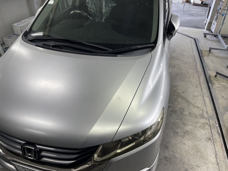 静岡県富士宮市|オデッセイ(ホンダ)のキズ・へこみ直し事例(ボンネットとルーフとFフェンダー左右塗膜の劣化修理)