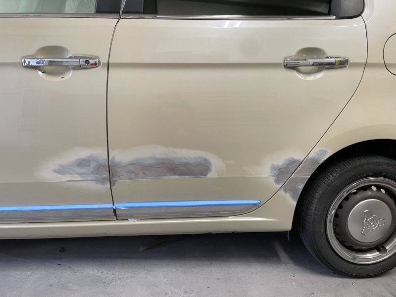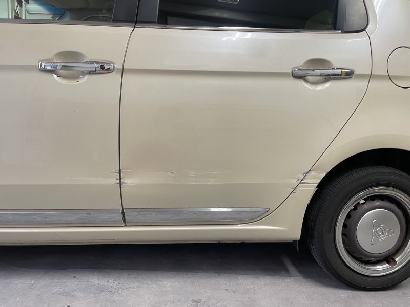 静岡県富士宮市|N-one(ホンダ)のキズ・へこみ直し事例(Fドア、Rドア、クォーターパネルのヘコミとキズ)